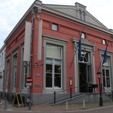 In 1865 in neo-classicistische stijl verbouwd ouder pand, bestemd als SOCIETEIT en gelegen op de hoek van Jansdam en Keistraat.