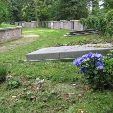 Naar neoclassicistisch geïnspireerd ontwerp van J.D. Zocher j.r. uit 1830 centraal op de begraafplaats aangelegde ROTONDE of grafheuvel, in drie - deels met gras begroeide - ringen trapsgewijs oplopend rondom een open put op cirkelvormige grondslag. Om en op de rotonde is een omlopend grindpad aangelegd, uitkomend op de bovenste cirkel vanaf de zuidzijde. De rotonde heeft verder van hardstenen afdeklijsten voorziene bakstenen ringmuren, waarin de toegangen tot de - vooral voor de Utrechtse notabelen bestemde - grafkelders zijn opgenomen. De bovenste ring bevat een reeks van liggende hardstenen platen met ijzeren ringen, telkens per twee gekoppeld en licht naar beneden hellend. De middelste ringmuur bevat aan twee zijden genummerde hardstenen grafstèles met tombevormige bekroningen, en de grafkelder voor de regenten van de Oud-Rooms-Katholieke Aalmoezenierskamer en bij nr 38 de grafkelder der Aartsbisschoppelijke geestelijkheid van Utrecht. De buitenste ringmuur bevat getoogde, genummerde grafstèles in hardsteen, deels met inscriptie.