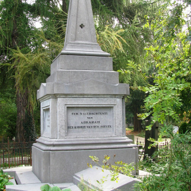 In eclectische trant uitgevoerd GRAFMONUMENT (vak 9, grafnr 50), blijkens inscripties ter nagedachtenis van ds. A. des Amorie van der Hoeven, uitgevoerd in hardsteen met toepassing traptreden, rechte basementen, profiellijsten, vlakke frontons en acroteria en een aan vier zijden geprofileerde obelisk met vierpas motief. Tekst voorzijde: "Ter nagedachtenis van Abraham des Amorie van der Hoeven". Tekst aan noordzijde: " geboren 22 february (1798) te Rotterdam"- Tekst aan achterzijde:" Hoogleraar in de godgeleerdheid aan het seminarium der Remonstranen". Tekst aan zuidzijde:" Overleden 29 juli 1855 nabij Arnhem".