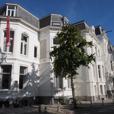 Het hoekpand op de Parkstraat bezit een in hout uitgevoerde serre.