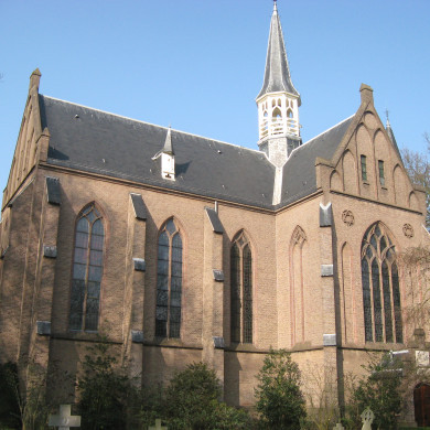 Hoge, eenbeukige neogotische kerk als ROUWKAPEL (complexonderdeel 4) uit 1880 naar ontwerp van A. Tepe met transept en vijfzijdig gesloten koor, op de viering een dakruiter met ingesneden spits. Rechts tegen de gevel van het koor een uitgebouwde sacristie. Geheel in baksteen opgetrokken gevels met spitsboogvensters tussen muurpijlers. Kopgevels van zowel schip als transept met groot spitsboogvenster en daarboven in de topgevel klimmende blindnissen, voorts onder meer blindnissen met en zonder bakstenen traceringen. Alle glas-in-lood vensters met bakstenen traceringen. Ingangen gelegen in kopgevels van het transept, beide met rondboogdeuren met siersmeedwerk, aan de linker zijde in een uitgebouwd portaal. In de kap enkele dakkapellen met luiken en naaldspits.