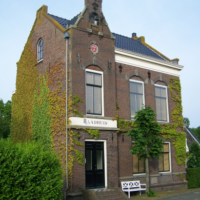 Vrijstaand voormalig RAADHUIS in neorenaissancetrant opgetrokken pand is in 1886 gebouwd, waarschijnlijk naar ontwerp van Van Hilten. Het had op de begane grond een veldwachterswoning en op de verdieping de raadzaal met wachtkamer en vestibule. Het bouwjaar staat vermeld op de topgevel.