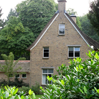 Een aan het begin en aan de rechterzijde van de oprijlaan gelegen DIENSTWONING (administrateurswoning) van twee bouwlagen in Delftse schoolstijl op vrijwel rechthoekige plattegrond. Het huis heeft een met riet gedekt zadeldak, waarvan de dakschilden aan de onderzijde een weinig uitzwenken. De in gele (sintel)baksteen opgetrokken gevels hebben voornamelijk ramen met stalen kozijnen.