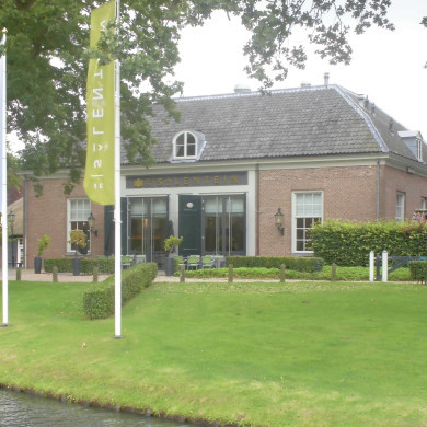 KOETSHUIS met SCHUUR. Ten noorden van het hoofdgebouw staat een bakstenen koetshuis met gevelsteen 'A.M. IJvoij 1826' (Anna Magdalena d'Yvoy die in 1846 huwde met H.M. van Weede). In 1983 is het pand tot restaurant verbouwd. Het op rechthoekige grondslag gebouwde koetshuis met lijstgevels bestaat uit één bouwlaag onder een met Oud-Hollandse pannen gedekt mansardedak, dat aan de achterzijde overgaat in een lessenaarsdak. De symmetrisch ingedeelde voorgevel heeft twee dubbele houten inrijdeuren, thans voorzien van een beglazing, gevat in een omlijsting met daarboven een rondboogdakkapel. Aan weerszijden van de deuren een meerruits schuifvenster. De overige gevels kennen een invulling met meerruits- en stalvensters (noordgevel), een toegangsdeur met vierruits bovenlicht (noordgevel) en driehoekig afgesloten dakkapellen. De achtergevel heeft bij de restauratie in 1983 een glazen overkapping gekregen, die voor de bescherming van ondergeschikte betekenis is. Achter het koetshuis, middels een gang verbonden, staat een op rechthoekige grondslag opgetrokken schuur van rode baksteen onder een met rode Oud-Hollandse pannen gedekt wolfdak. In de achtergevel van de schuur twee staldeuren en een hooiluik onder een latei, in de zijgevel stalvensters.