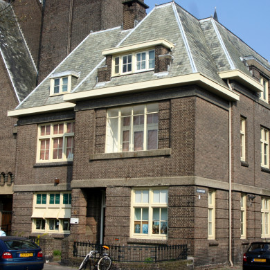Uit 1924-1925 daterende PASTORIE, behorende tot de rooms-katholiek Onze Lieve Vrouw Hemelvaart- en Sint Josephkerk, gebouwd in opdracht van het bisdom Haarlem en de Onze Lieve Vrouwe Hemelvaart-parochie (bouwpastoor A. Leusen). Bouwmeesters van zowel de St. Jopsephkerk als de bijbehorende pastorie waren de architecten Leo van der Laan en diens zoon Jan. Het uit 1922 daterende ontwerp werd uitgevoerd door het Leidse aannemersbedrijf Bik en Breedeveld. Kerk en pastorie, die een functionele en visuele eenheid vormen, zijn gebouwd in een typische, aan de Nieuwe Haagse School verwante, expressionistische bouwstijl. Het voor een belangrijk deel niet meer in oorspronkelijke staat verkerende interieur van de pastorie valt niet onder de bescherming van rijkswege.
