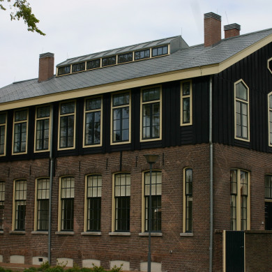 Het lichthuis van het dak van het oorspronkelijke éénlagige gebouw, is na de verbouwing ook op het verhoogde gebouw weer aangebracht.