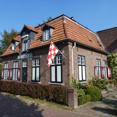 Bij de ingang van de buitenplaats aan de Kapelstraat bevindt zich een monumentale boerderij van rode baksteen op rechthoekige grondslag onder afgeplat met rode muldenpannen gedekt schilddak. In de langsdeel getoogde stalvensters met spaakroeden. Terzijde een bakstenen schuur op langwerpige rechthoekige grondslag eveneens gedekt met muldenpannen en vensters met getoogde strekken en spaakroeden. Woongedeelte met tandfries en meerruits schuifvensters in kruiskozijnen met luiken. Dakkapellen. In het langsdeel getoogde vensters en dakkapel met hooiluik dat in de gevel is doorgetrokken.