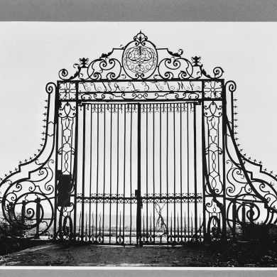 De toegang wordt gevormd door een monumentaal smeedijzeren hek uit circa 1750 staande op een bakstenen boogbrug met hardstenen dakplaten. Het hek bestaat uit twee spijlen hekvleugels tussen stijlen met in de bovenligger de naam AMSTEL-RUST en daarboven een kuif van siersmeedwerk, aan weerszijden voluutvormige zijstukken.
