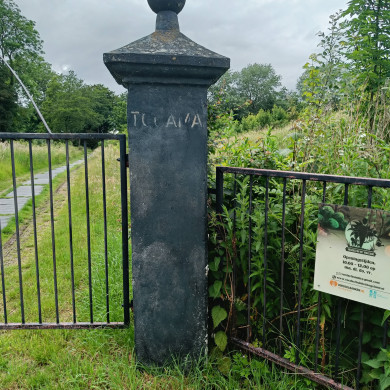 Aan de Dingeweg gelegen HEKPIJLERS uit omstreeks 1900, die de toegang naar het achtererf van de boerderij markeren. De gepleisterde pijlers hebben een vierkante grondslag en staan op een rechthoekige basis. Als beëindiging hebben ze een afdekplaat met koepeldakje, bekroond door een op een voetstuk geplaatste bol. Op de linker pijler staat in goudkleurige letters: Huize, en op de rechter: Tocama. Het beweegbare smeedijzeren hek tussen de pijlers is vernieuwd. Bij de entree aan de Borgweg staan identieke pijlers; ze zijn een kopie, gemaakt omstreeks 1995 en vallen derhalve buiten de bescherming.