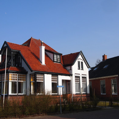 - als voorbeeld van een rentenierswoning met aangebouwd koetshuis uit 1908 in de provincie Groningen in een Overgangsarchitectuur met Chalet- en Art Nouveau-stijl elementen