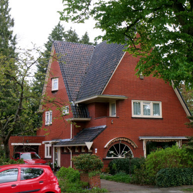 - als voorbeeld van een villa met aangebouwde garage uit 1937 in late Expressionistische stijl