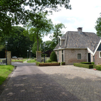 BOERDERIJ met achterbaander en ankerjaartal 1730. (Bescherming betreft het hoofdgebouw met vrijstaande houten schaapskooi 18e eeuw en vrijstaande deels houten en deels stenen hooiberging (1888) en met het uit het begin van de 19e eeuw daterende houten turfhok.