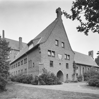 Abdij en abdijkerk behorende bij het complex St. Adelbertusabdij. De ABDIJ bestaat uit een in bruine baksteen opgetrokken samengesteld bouwvolume op een onregelmatige L-vormige plattegrond. De oost-west georiënteerde ABDIJKERK is aan de noordzijde via de kloostergang verbonden met de abdij. Het bouwvolume is samengesteld uit enkele in hoogte verschillende onderdelen die worden afgedekt door hoge met rode pannen gedekte geknikte zadeldaken met uitzwenkende dakvoet. De uitgebouwde en deels als zelfstandig bouwvolume opgevatte kloostergang verbindt aan de oostzijde de verschillende onderdelen. De afwisseling in hoogte en oriëntatie van de daken, in combinatie met de tuitgevels en de trapgevel van het hoogste bouwvolume bepalen het silhouet van het abdijcomplex. Het gebouw bevat deels rechtgesloten vensters en deels spitsboogvensters. Het oudste gedeelte van de abdij bestaat uit een noord-zuid georiënteerde lange vleugel van twee bouwlagen en zolderverdieping en haaks daarop een lagere korte vleugel met de voormalige kapel (nu: kapittelzaal). Bij deze vleugel is het dakschild aan de noordzijde verlengd tot boven de kloostergang.