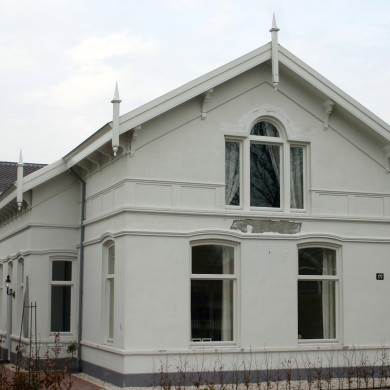De serre rechts van de voorgevel is later aan de villa toegevoegd.