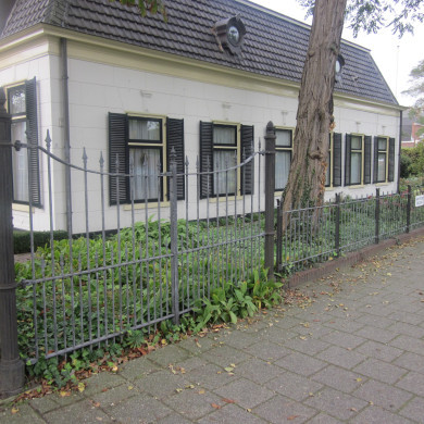 Aan de straatzijde, waar zich ook de hoofdingang tot het huis bevindt, staat als toegang tot de tuin een 19de-eeuws HEK in Classicistische stijl.