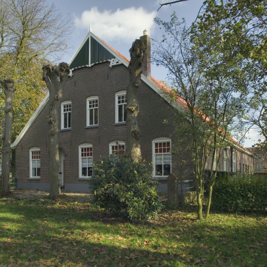 BOERDERIJCOMPLEX bestaande uit een HALLEHUISBOERDERIJ met VARKENSSCHUUR naar een ontwerp van B. EBBERS uit 1926 en een WAGENSCHUUR.