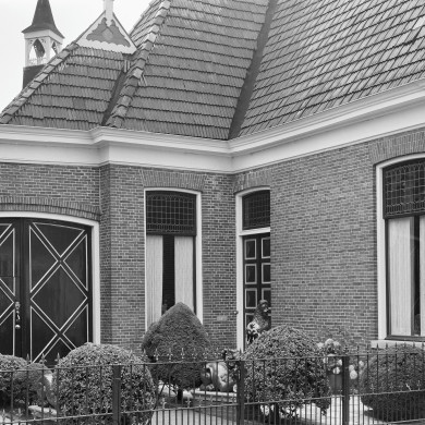 SCHUUR bij herenhuis, gebouwd omstreeks 1860. De schuur is opgetrokken in een roodbruine baksteen op een trasraam van roodbruine klinkers, afgesloten door een gepleisterde cordonlijst. Het zadeldak, gedekt met een zwart geglazuurde Friese golfpan, heeft decoratieve windveren en een goot met decoratieve gootlijst. In de zuidgevel twee ijzeren roosvensters en vijf kleine gevelopeningen (voor duiven) met een dwarsgeplaatste baksteen. In de oostgevel twee opgeklampte deuren met rollaag en vier ijzeren roosvensters, en een rij in de gevel gemetselde mannenkopjes (afkomstig van een oude Groninger borg). In de noordgevel een licht getoogd staand venster met ijzeren kruisroeden, een licht getoogd negenruits venster, vier kleine gevelopeningen (voor duiven), en in de gevel gemetselde mannenkopjes en sierstenen.