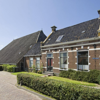 De BOERDERIJ van het kop-hals-romp type is gebouwd in 1898 in eclectische stijl met verwijzingen naar de Neo-Renaissance-stijl. De boerderij ligt op traditionele wijze georiënteerd ten opzichte van de dorpsterp: het voorhuis aan de weg rond de kerk, de schuur gericht naar de voormalige landerijen erachter. De schuur heeft een achtergevel-indeling die karakteristiek is voor een overwegend veeteeltbedrijf. De boerderij ligt parallel aan de ontsluitingsweg Gele Buorren.
