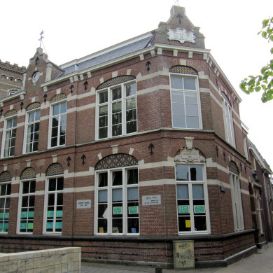 SCHOOL VAN BASISONDERWIJS VOOR JOODSE KINDEREN, in 1886 naar ontwerp van architect Herman Rudolf Stoett in een decoratieve neo-renaissance-stijl aan de marge van de joodse buurt in Leeuwarden gesticht. In het omvangrijke oeuvre van de architect neemt de school een opmerkelijke plaats in, omdat hij gewoonlijk in eclectische stijl ontwierp. Aan de rand van de noordelijke Nijehoveterp ten zuidwesten van het Jacobijnerkerkhof heeft sinds de Middeleeuwen een parochiekerk gestaan. Deze Mariakerk, na de Hervorming lang in gebruik geweest als klokkengieterij, is in 1765 afgebroken; de daardoor beschikbaar gekomen ruimte is daarna deels met onbeduidende panden bebouwd geraakt. Gedurende de tientallen jaren omstreeks 1900 kwam er een aantal gebouwen voor bijzondere functies tot stand. Aan de zijde van de Grote Kerkstraat een nonnenklooster met enkele R.K. scholen.