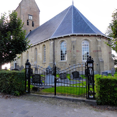 Herv. kerk. Op omgracht kerkhof gelegen kerkgebouw bestaande uit bakstenen schip met jongere rechtopgaande zadeldaktoren. Klokkenstoel met klok van Hermanus, 1402, diam. 142 cm. Mechanisch torenuurwerk J. Wielinga, Franeker, 1958.