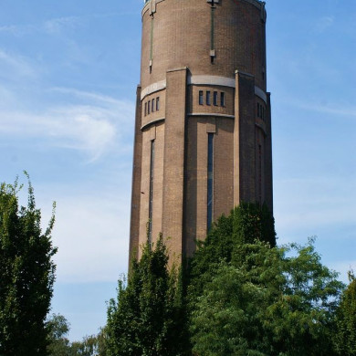 In 1935 werd aan de toenmalige rand van de stad in opdracht van het Rijksbureau voor Drinkwatervoorziening te 's-Gravenhage deze WATERTOREN in de verstrakte vormen van de Late Amsterdamse School opgetrokken. De ontwerper was waarschijnlijk Kording. De éénlaags aanbouwen aan de voet van de watertoren zijn van latere datum en vallen buiten de van rijkswege geldende bescherming. De watertoren is niet meer als zodanig in gebruik. Op de begane grond is nu winkelruimte gevestigd. De bovenste verdiepingen staan leeg. Sinds 1985 is de watertoren eigendom van een Turkse moskeevereniging die in de aanbouwen een moskee exploiteert.