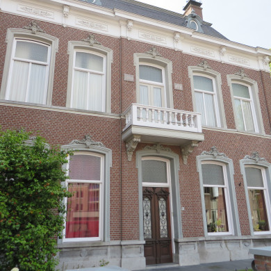 Voorzijde met symmetrische vijf traveeën brede lijstgevel met hoekpilasters en licht risalerende middenpartij waarin beglaasde paneeldeur in neo-renaissancistische vormgeving met geprofileerd kalf en bovenlicht. Deze deur wordt geflankeerd door twee tweeruits schuifvensters. Op de verdieping een balkon op voluutvormige consoles met balusterhek, waarachter dubbele balkondeur met bovenlicht. Aan weerszijden hiervan twee T-vensters. In de voorgevel zijn, evenals in de rechter gevel, alle gevelopeningen voorzien van een gepleisterde, geprofileerde stucomlijsting met bekronend, barok gedetailleerd kuifstuk. Verder een omlopende hoge hardstenen plint met (slechts in de voorgevel) casementen, bekroond met een hardstenen waterlijst. Dito lijst onder de vensters op de verdieping. Omgaande geprofileerde goot, aan de achtergevel en linker gevel opliggend, aan de voorgevel en rechter gevel overstekend en gekornist, rustend op voluutvormige consoles in een daklijst met overigens tussen de consoles decoratief bewerkte panelen. De rechter gevel bezit in beide bouwlagen drie vensters als voornoemd, voorts gedetailleerd als de voorgevel. Aan de achtergevel is op de begane grond links een houten serre op stenen voet onder plat aangebouwd. Overstekende, geprofileerde kroonlijst op klossen en bovenlicht met karakteristieke kleine roedenverdeling. Centraal een beglaasde achterdeur. Rechts een haaks geplaatste eenlaags aanbouw onder plat. Voorts onder meer een drietal getoogde T-vensters met hardstenen afzaat. De linker gevel grenst aan de voorzijde aan het buurpand, de achterzijde ligt vrij. In de gevel twee getoogde vensters en een klein gekoppeld trapvenster. Plattegrond met centraal (versoberde) vestibule, gevolgd door middengang naar achterdeur. Aan de rechterzijde woonvertrekken en keuken, aan de linkerzijde woonvertrekken en bordestrap naar de verdieping met slaapkamers (nu ook woonvertrekken). Van het interieur zijn onder meer vermeldenswaard: de oorspronkelijke kelder met troggewelf en profielijzers, marmeren gangvloer en lambrisering, trap, stucplafonds, beschilderde paneeldeuren met geprofileerde deurlijsten, traplicht met geëtst glas.
