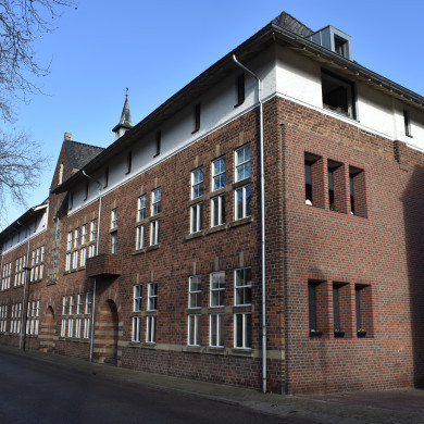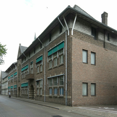 Het pand bestaat uit een langgerekte drielaagse vleugel aan de Kerkstraat onder schilddak waarvan de nok evenwijdig aan de straat loopt. Daarachter is een iets lagere, L-vormige bouwmassa gezet. Binnen deze vleugels is toegevoegd is een binnenplaats ontstaan. Het geheel is uitgevoerd in groot formaat handvorm baksteen waarbij de bovenste bouwlaag iets naar voren steekt en wit geschilderd is. Rondom de ingangspartijen zijn natuurstenen blokken aangebracht. Het dak is voorzien van een overstek en is gedekt met romaanse pannen. De voorgevel heeft, links van het midden, een entree waarboven hoge smalle glas-in-loodramen zijn aangebracht. Dit deel wordt bekroond door een topgevel met nis waarin een beeld geplaatst is. Op het dak, achter de topgevel is een vierkante dakruiter met spits zichtbaar. Boven een tweede deur bevindt zich een rechthoekig balkon met baksteen balustrade en metalen deur. De twee ingangen bestaan uit dubbele houten rondboogdeuren met kleine raampjes op hardstenen dorpels in portieken. Bij één daarvan is vóór de oorspronkelijke deur een raam gezet. De portieken zijn voorzien van een bakstenen trapje en natuurstenen speklagen en blokken in de boog. In deze gevel bevinden zich op de begane grond en eerste verdieping tweedelige ramen, onder- en bovenlichten zijn van elkaar gescheiden zijn door een natuurstenen band, in de strekken is een natuurstenen sluitsteen aangebracht. De ramen zijn voorzien van metalen kozijnen met kunststof voorzetramen. De tweede verdieping bevat smalle zesruitsramen met metalen kozijnen. Het metselwerk van de zijgevel is over twee bouwlagen opnieuw beklampt. In de gevel bevinden zich rechthoekige ramen met metalen kozijnen. De achtergevel, aan de binnenplaats, heeft op de eerste verdieping een doorlopend balkon met bakstenen balustrade. Daarboven is een galerij met rondbogen, uitgevoerd in witgeverfde steen, zichtbaar.