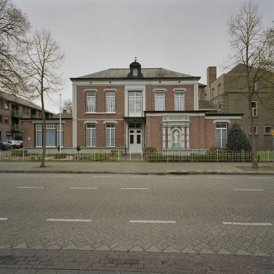 Tweelaags pand op een rechthoekige plattegrond onder een mansardedak, gedekt met leien. Het dak is voorzien van een gootlijst en wordt in het midden bekroond door een kleine dakruiter. De voorgevel is vijf traveeën breed. Rechts van het midden is een éénlaagse uitbouw onder plat dak geplaatst, aan de straatkant voorzien van een nis met een beeld van de heilige Antonius van Padua met kind op de arm. Deze aanbouw steekt uit ten opzichte van de zijgevel. Links is tegen de zijgevel een serre-achtige éénlaagse uitbouw onder plat dak zichtbaar. Deze bouwmassa bevat enkele grote openslaande deuren en ramen die de totale hoogte van de gevel in beslag nemen. In de bovenlichten is een kleine roedenverdeling aangebracht. Aan de straatzijde is een drieledig raam zichtbaar, in de bovenlichten eveneens met een kleine roedenverdeling. De gevelkozijnen zijn gehandhaafd; de inzetkozijnen van kunststof. Het pand is uitgevoerd in baksteen met een hoge gepleisterde plint. Daarnaast is de gevel voorzien van gepleisterde hoekpilasters en een gepleisterde kroonlijst. Tussen de begane grond en verdieping loopt een waterlijst. In de eveneens gepleisterde middelste travee bevindt zich de ingang, een paneeldeur met gietijzeren roosters en bovenlichten, waarboven een luifel is geplaatst. De luifel steunt op bladconsoles en smalle ijzeren kolommen. Daarboven is een deur aangebracht, de risaliet wordt bekroond door een dakkapel met wangen en een rondboograam onder een gebogen fronton. In de gevel zijn hoge zesruitsramen aangebracht met een gepleisterd geblokte boog. In de kroonlijst zijn kleine ronde raampjes zichtbaar, in de zijgevels zijn het vierkante raampjes.