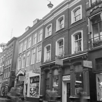 INTERIEUR met onder meer een kelder, bestaande uit een grote overwelfde middeleeuwse kelderruimte, een smal overwelfd trapgedeelte langs de linker zijgevel, een kelderruimte met drie troggewelven in de lengterichting van het gebouw en een kelderruimte met smal tongewelf aan de achterzijde; twee toogkasten met kuiven behorend tot de laat 19de eeuwse winkelinventaris; eenvoudige stucplafonds met middenrozetten in de vestibule en de bovenwoning, evenals paneeldeuren met geprofileerde kozijnen en enkele zwart marmeren schouwen; trappenhuis aan de achterzijde met bewerkte houten trappaal en spijlen; zolderverdieping met twee houten boogspanten met makelaar.