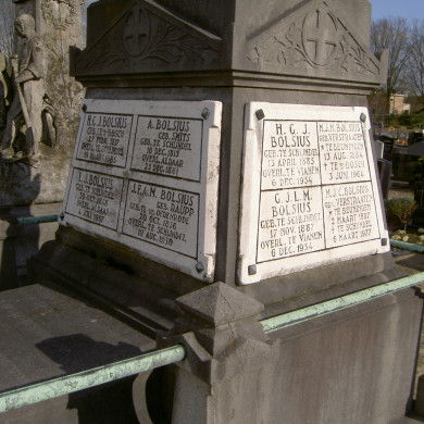 Aan het linker laantje in de noordwestelijke hoek van de begraafplaats liggen de op het noordwesten georiënteerde grafmonumenten van de familie Bolsius. Het oudere FAMILIEGRAF is direct aan het laantje gelegen en dateert uit 1881. Stilistisch vertoont het invloeden van de Neo-Renaissance en een gematigde Neo-gotiek.