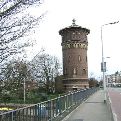 De WATERTOREN van 35 meter hoogte werd in 1899 gebouwd in Neo-Renaissance stijl naar ontwerp van D. de Leeuw.