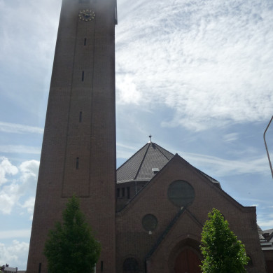 De ONZE LIEVE VROUWE VAN LOURDESKERK werd gebouwd tussen 1926 en 1928 naar ontwerp van Joseph en Pierre Cuypers jr. De stijl is afgezwakt Expressionisme. De gerealiseerde kerk wijkt sterk af van het door diens overlijden niet uitgevoerde ontwerp uit 1918 van Jac. van Gils. In 1944 gingen enkele aangrenzende ruimten in dezelfde trant, de Lourdesgrot en de klokkentoren verloren. De toren werd in 1955 herbouwd.