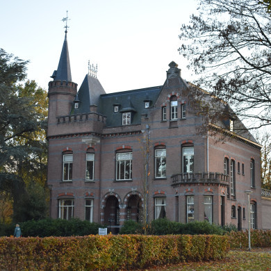 Van de linkerrisaliet is de buitenhoek op de verdieping overkragend en op een zandstenen console geplaatst. Tegen de rechterhoek is de bovenste rand voorzien van een console. De bekroning van dit risaliet bestaat uit een iets overkragende borstwering met een rand gemetselde kantelen om een puntdak, bekroond door een siersmeedijzeren hekwerk. Links gaat de borstwering over in een achtkantig torentje met spits, de spits is ook omgeven door gemetselde kantelen. De topgevel van de rechterrisaliet heeft een natuurstenen bekroning waarin een wapenschild is afgebeeld met fronton. Op de hoek met de rechterzijgevel bevindt zich op de begane grond een tweelaagse vijfkantige erker met in elk gevelvlak een smal raam, voorzien van een natuurstenen latei. In de ontlastingsboog is een hardstenen diamantkop als sluitsteen aangebracht. Aan de bovenkant is een overstekende rand op natuurstenen consoles zichtbaar, daarboven een gemetselde borstwering met kantelen met een natuurstenen afdeksteen. In de rechterzijgevel is een dienstingang geplaatst. Deze bestaat uit een paneeldeur met ijzeren roosters, voorafgegaan door een hardstenen trapje en klein bordes. Aan weerszijden van deze ingang bevindt zich een raam met smeedijzeren hekwerk in Art-Nouveau vormgeving. Tussen de ramen en segmentbogen is een rand in zwarte steen aangebracht. Rechts van deze ingang bevindt zich een twaalfruitsraam, meteen erboven op de verdieping is een T-raam aangebracht. Boven de deur bevinden zich twee kleine ramen. Links in de gevel zijn hoge ramen met horizontale roeden zichtbaar. In het dakvlak zijn dakkapellen onder een puntdakje geplaatst. De linkerzijgevel heeft een uitstekend trappenhuis onder een spits dak. Ertegen aan is een (later toegevoegde) metalen brandtrap geplaatst. De bovenkant van de gevel is aan de voorzijde, in aansluiting op het hoektorentje voorzien van een rij gemetselde kantelen op een lijst. Daarachter is een klein rondboogfries in rode baksteen uitgevoerd. Aan de achterkant is aan beide zijden een risaliet met klein schilddakje gemaakt. Over de gehele breedte van de achtergevel is een na-oorlogse éénlaags serre onder plat dak gebouwd. Hierin bevinden zich vier aaneengesloten panelen waarin ramen zijn aangebracht. De bovenkant van de gevel is met een geschulpte rand afgewerkt. Op de verdieping zijn T-ramen onder segmentbogen geplaatst. Onder de dakrand bevindt zich een houten geprofileerde goot op klossen. In het dakvlak zijn boven de risalieten en daar tussenin dakkapellen met vierruitsramen, onder een opgewipt dak zichtbaar. In het interieur is de oorspronkelijke indeling in grote lijnen bewaard gebleven. Centrale hal achter de hoofdingang, met kamers rondom, rechts een trappenhuis en gang naar de dienstingang. Het huis is gedeeltelijk onderkelderd.