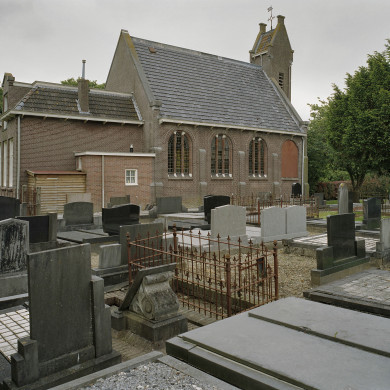 Kerkhof der Herv. Kerk. Op het kerkhof een aantal 17e en 18e eeuwse zerken voor het geslacht Tammens. In de toren een oude klok.