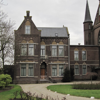 PASTORIE aan de noordzijde van de R.K. kerk 'St Franciscus' opgetrokken in een door de neorenaissance beinvloede stijl. De pastorie is door een plantsoen van de weg gescheiden en door middel van een lager tussenliggend bouwdeel met deze kerk verbonden.