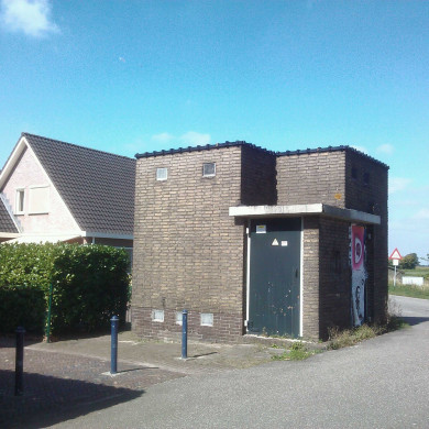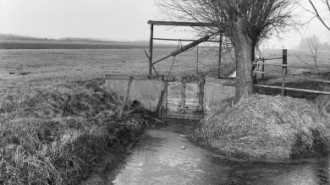 Vermoedelijk 19e eeuws stuwtje, bestaande uit een houten schot tussen in gemetselde constructies uitgespaarde sponningen, verticaal beweegbaar middels een windas, bestaande uit een ijzeren juk, waartussen een draaibare rol - waarover een afdakje - is geplaatst, een ijzeren handwiel en kettingen.