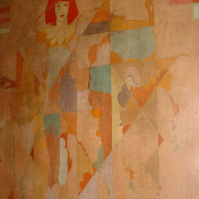 De schilderingen op de wanden (alleen aan de lange zijden van de ruimte) bestaan uit dertien gestileerde vrouwenfiguren in verschillende poses. De vrouwen, oorspronkelijk 16 in aantal, staan elk in een eigen kader. De vrouwen zijn weelderig gekleed en omgeven door gestileerde wolkenpatronen. De in Art Deco-stijl vormgegeven schilderingen zijn overwegend in pasteltinten ('ton-sur-ton') uitgevoerd. De achtergrond is overwegend oranje-rood. Het geheel is sterk lineair met forse contouren en met grote vlakken opgezet. Hoewel alle figuren een andere kleurstelling en detaillering hebben geeft de overwogen vlakverdeling en de sterke stilering een zekere rust aan de schilderingen. De schilderingen worden bovenaan afgesloten met een lijst.