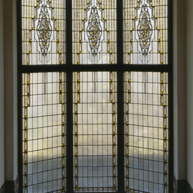In het midden van het oostelijke deel van de villa is de trappartij gesitueerd. De met oosterse motieven gestileerde tegels decoreren de met een houten leuning uitgeruste trap. Het glas-in-lood in het trappenhuis is verzorgd door W. Bogtman. In het middendeel van de eerste verdieping, is de rijk gedecoreerde hal gelegen. Ter linker- en ter rechterzijde van de trap zijn twee tevens rijk gedecoreerde vertrekken gesitueerd. Met materialen als stuc, tegels, glas, behang en verschillende houtsoorten zijn ruimten gecreëerd die deels een neorenaissance-stijl en deels een vrije expressieve vormgeving hebben, waarbij van oosterse invloeden sprake is.