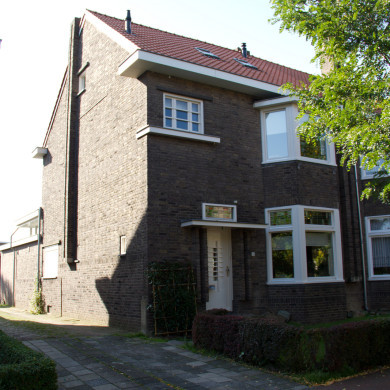 Twee BEAMBTENWONINGEN onder-één-kap gebouwd in 1927 in traditionalistische stijl naar ontwerp van architect A.J.N. Boosten in opdracht van de Stichting Thuis Best te Heerlen.