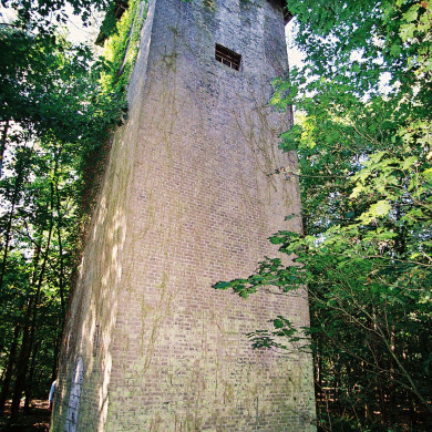 Vrijstaande uilentoren op een vierkante plattegrond. Het toegepaste bouwmateriaal is baksteen. Metselwerk in kruisverband. De vierkante plattegrond meet ongeveer 5 bij 5 meter. De toren is ongeveer 15 meter hoog en wordt afgedekt met een tentdak met leien. In elk dakvlak een dakkapel. Rechthoekige ijzeren vensters. Rondboogvormige deuropening werd dichtgezet met betonstenen. Aan de bovenzijde van de deuropening een gevelsteen met het jaartal 1937. In het benedendeel van de toren diverse smalle openingen. In het bovenste deel van de toren in elk gevelvlak een rechthoekig ijzeren vensterkozijn met kleine roedeverdeling.