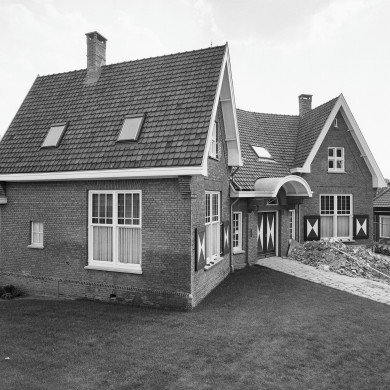 Boerderij van het Noordbrabantse langgeveltype; in de schuur balken met gesneden sleutelstukken, XVIIe of XVIIIe eeuw. In de gevel letter-ankers W H.