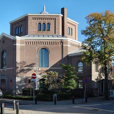KERK gebouwd in de jaren 1860-1861 als doopsgezinde vermaning naar eclectisch ontwerp van architect L.J. Immink en sinds 1953 in bezit van het Apostolisch Genootschap. De teruggerooide kerk staat op de hoek van de Oostzijde en de Belgische straat.