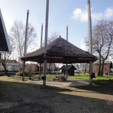 De hooiberg met zes roeden draagt een rieten tentdak.