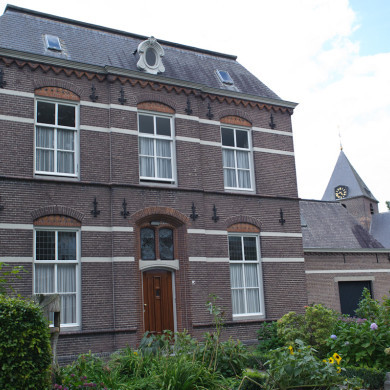 In de zij- en achtergevel zijn enkele kleine openslaande ijzeren spitsboogvensters met vorktracering aangebracht. In de achtergevel is onder een rondboog een deur naar de ruime achtertuin. Ten zuiden van de pastorie wordt deze van de straat gescheiden door een oude haagbeuk. In de tuin een kleine boomgaard.