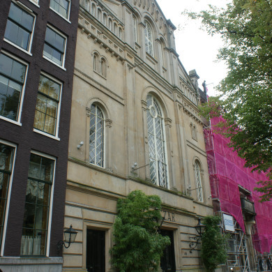 Een in twee periodes tot stand gekomen KERK. Voormalige Nieuwe Waalse Kerk. In eerste instantie gebouwd tussen 1854 en 1856. Een gedenksteen naast de trap van de preekstoel vermeldt de eerste steenlegging in het jaar 1855. Tijdens brand in 1861 stortte de kap in. In 1862 in gewijzigde vorm herbouwd. In beide gevallen was A.N. Godefroy de architect. Opdrachtgever was het Kerkbestuur der Waalsch Hervormde Gemeente te Amsterdam. Gebouwd in de stijl van het eclecticisme.