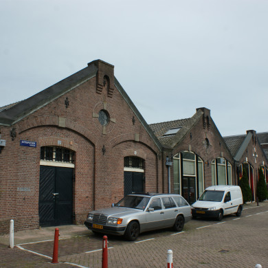 V.m.Hoofdgebouw van het Entrepotdok (1828/30, door de stadsbouwmeester J. de Greef), bestaande uit een lange en twee korte, naar de zijde van een binnenplein uitstekende, boven de omlopende gevellijst van een extra verdieping voorziene vleugels. Zandstenen, door een fronton gedekte inrijpoort.