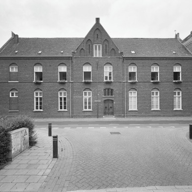 Het drielaags gebouw is sinds de bouw van objecten (2) en (3) tegen resp. de zuid- en de noordgevel voor een groot deel ingesloten. Het handvormbakstenen gebouw heeft een langwerpige rechthoekige plattegrond en een geknikt schilddak met oud Hollandse pannen, waarop een schoorsteen en een vierkante dakruiter met een door een smeedijzeren kruis bekroonde naaldspits. Op het dak staan eenvoudige houten dakkapellen. Het muurwerk van de twee vensterassen tellende straatgevel is geleed door twee geschilderde cordonlijsten. De ztraatgevel en de overige gevels worden bekroond door een geprofileerd gestucte en geschilderde gootlijst. In alle lagen van de gevels zijn op regelmatige afstand vensters aangebracht. Op de begane grond zijn dat zesruits openslaande vensters met een vierruits bovenlicht, op de verdieping dito zesruits vensters met een enkelvoudig gedeeld bovenlicht, en op de tweede verdieping vierruits openslaande vensters met een gedeeld bovenlicht. In de noordelijke gevel is op de begane grond na de aanbouw van de kapel in de tweede vensteras een venster door een opgeklampte deur in ondiep portiek vervangen. Tegen de zuidelijke gevel van deze vleugel staat over de gehele lengte een houten veranda met gesneden stijlen en korbelen en een lessenaardak met oud Hollandse pannen. Deze aanbouw dateert waarschijnlijk uit 1888. Tegen de noordelijke gevel staat een oude bakstenen pomp met smeedijzeren zwengel.