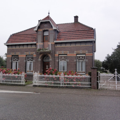 Een smeedijzeren hekwerk met Art-Nouveau detaillering scheidt de voortuin van de Dorpsstraat. Het hek hangt aan bakstenen pijlers en is voorzien van twee poortjes. Oostelijk van de voormalige boerderij ligt een door een oude beukenhaag omgeven tuin met kleine boomgaard. De westelijke tuin (met o.a. hulst, taxus en magnolia) wordt omgeven door een meidoornhaag.