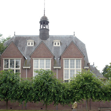 KAPEL annex FOYER, gelegen op de hoek van twee wegen, achter het hoofdgebouw, gebouwd in 1918 in Neo-Renaissancestijl, vermoedelijk naar ontwerp van het bureau Rijksbouwmeesters.