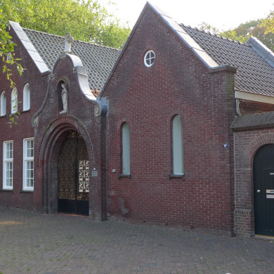 Bakstenen gebouw, aan de ingang van de begraafplaats gebouwd. Het geheel bestaat uit een poort met klokgevel waarachter zich een zadeldak met houten plafond uitstrekt. De topgevel aan de achterzijde is voorzien van windveren en betimmering. De gevel wordt aan weerszijden gedekoreerd door voluten, uitgevoerd in natuursteen. In een nis op de topgevel is een beeld van St. Catharina geplaatst. De toegang heeft een smeedijzeren rondbooghek.